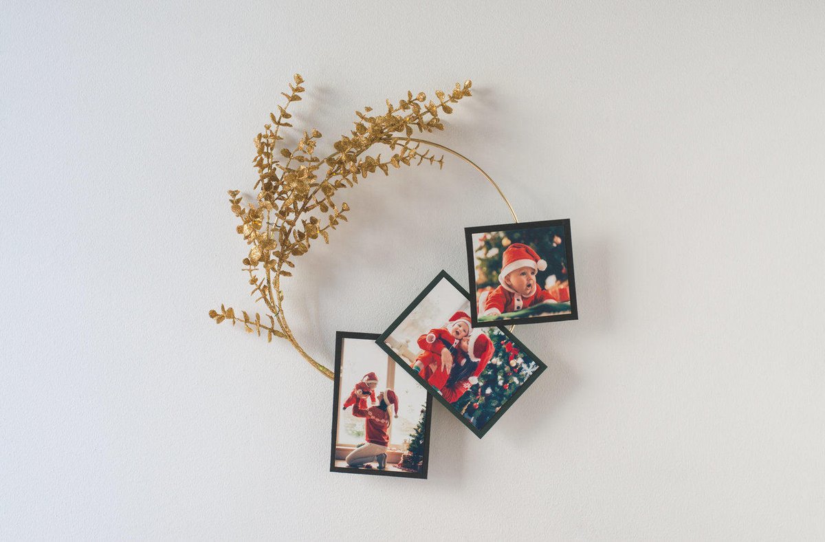 Hoop Garland Whether for the holidays or just because, DIY a hoop garland you can hang your favorite photos on. Paint it in your favorite color or a bright metallic so it can hang in your home all year long.