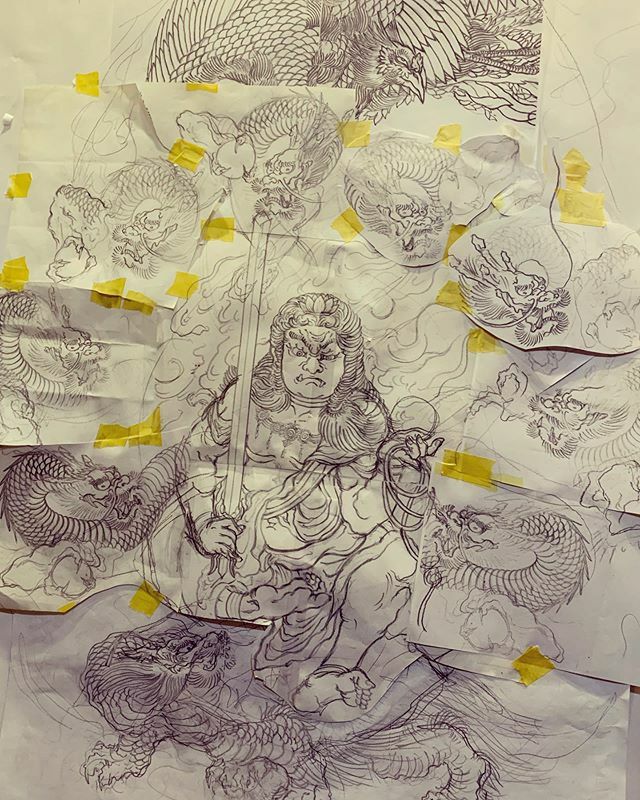 不動明王と八大龍王のアクリル画を制作予定。。。