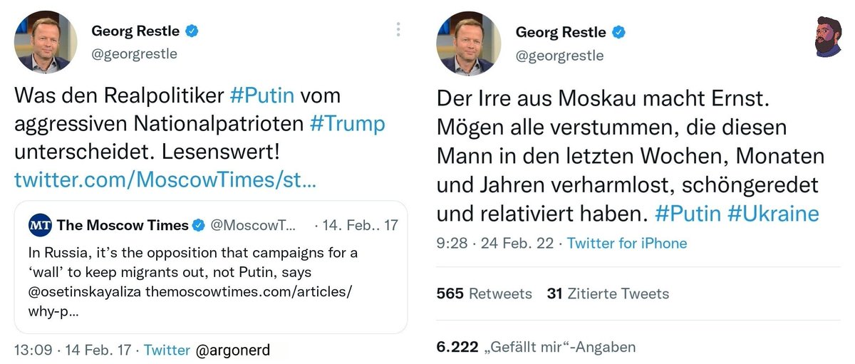 Mir ist aufgefallen, dass bei Ukraine-Themen oft sehr schnell Twitter-Accounts dazukommen und einen "russlandfreundlichen" oder "westkritischen" Standpunkt vertreten, die nur aus einem Vornamen+Zahlenkombination bestehen, also z.B. Alex086419723 oder Joe001997654. Zufall?