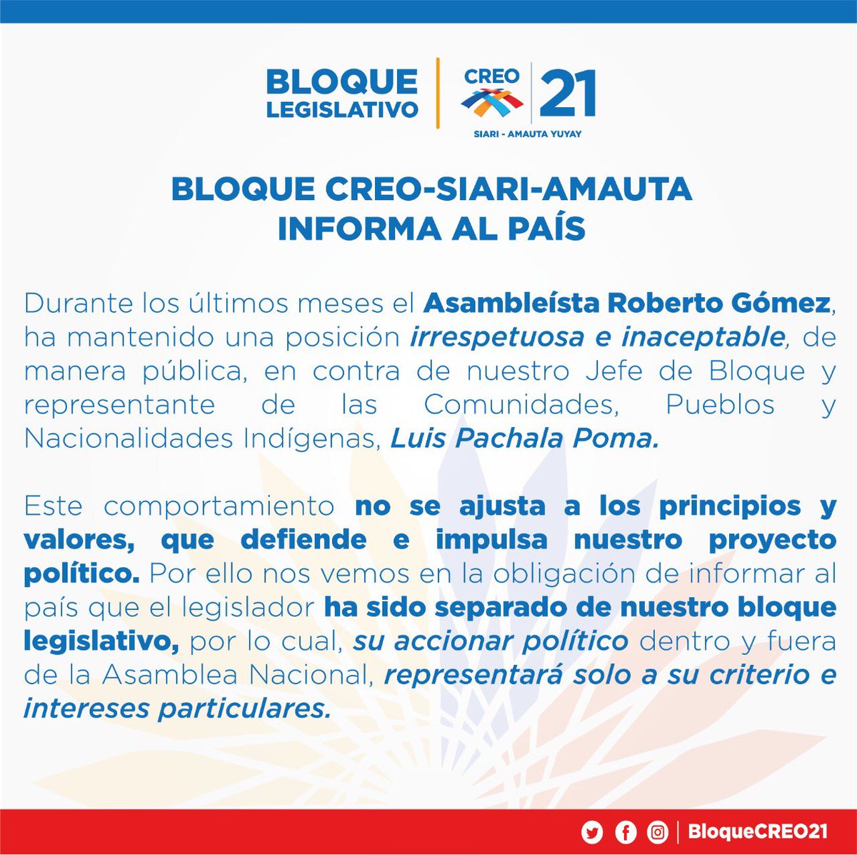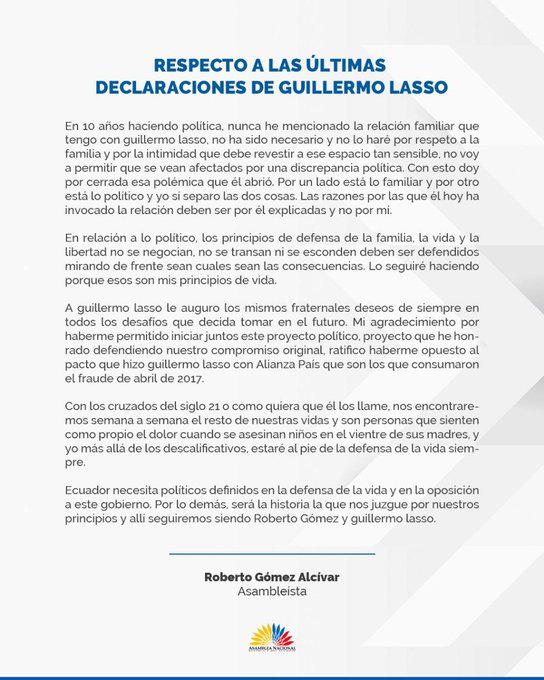 @GomezRobertoA en su carta de respuesta menciona 4 veces a@LassoGuillermo y escribe, al parecer deliberadamente, en minúsculas el nombre del dirigente del movimiento@CREOEcuadorpic.twitter.com/hVKMiRmREW