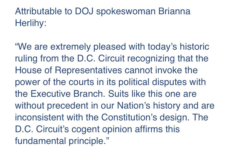 DOJ statement on McGahn ruling:pic.twitter.com/lIiyc8zt7m