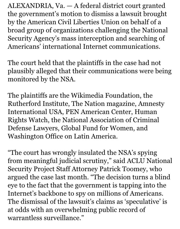 Here's part of statement from @ACLU on the #NSA casepic.twitter.com/FIIx0OX05H
