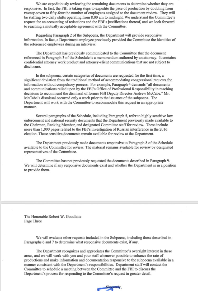 Why is there such a difference between the way the FBI is treating Goodlatte’s request (doing everything we can; starting a second shift to review docs; delivering docs every 10-14 days) vs the way the FBI treated Nunes’ request (you get nothing; please side with us Speaker Ryan)