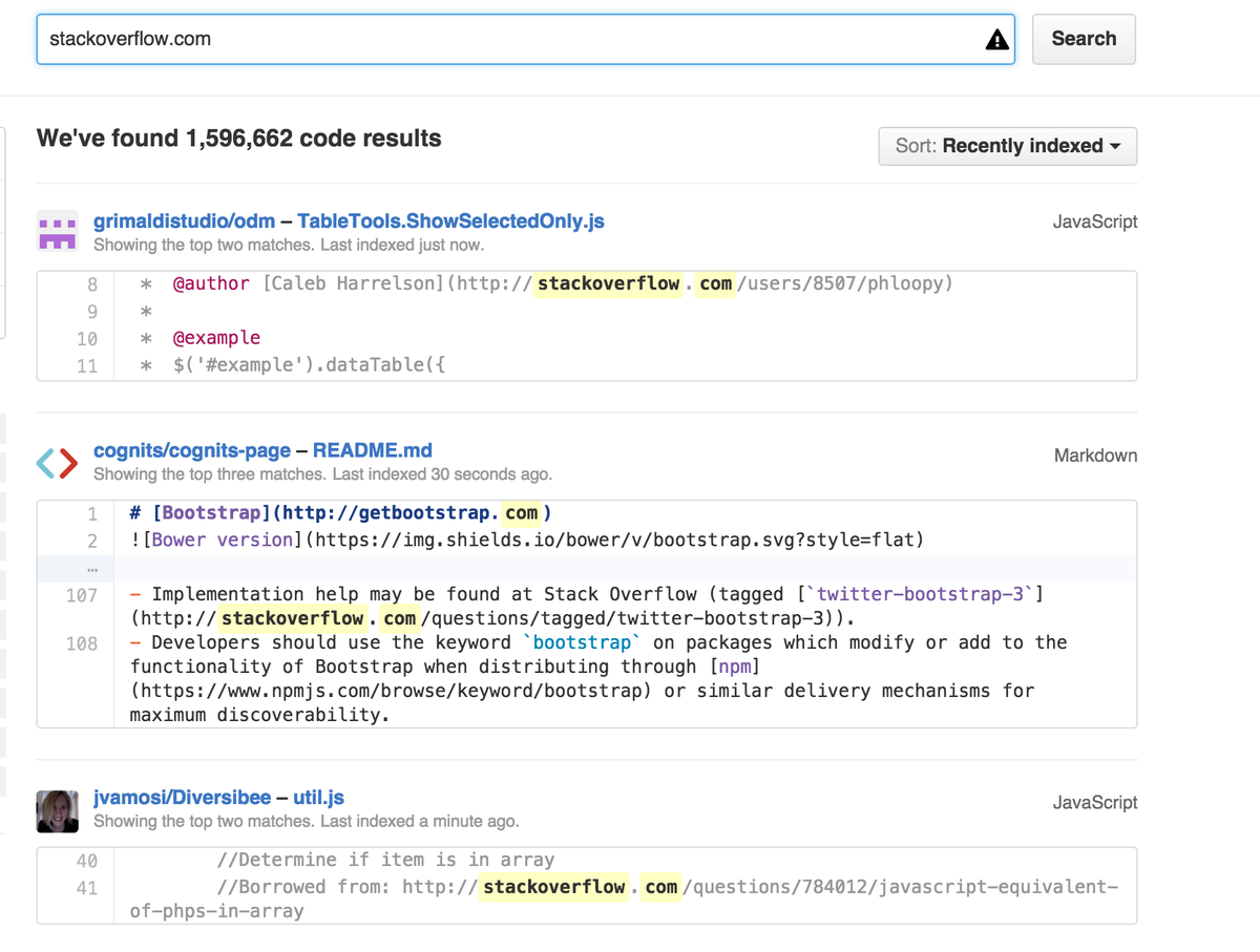1.6 million references to StackOverflow in public Github repospic.twitter.com/1LECOByhGt