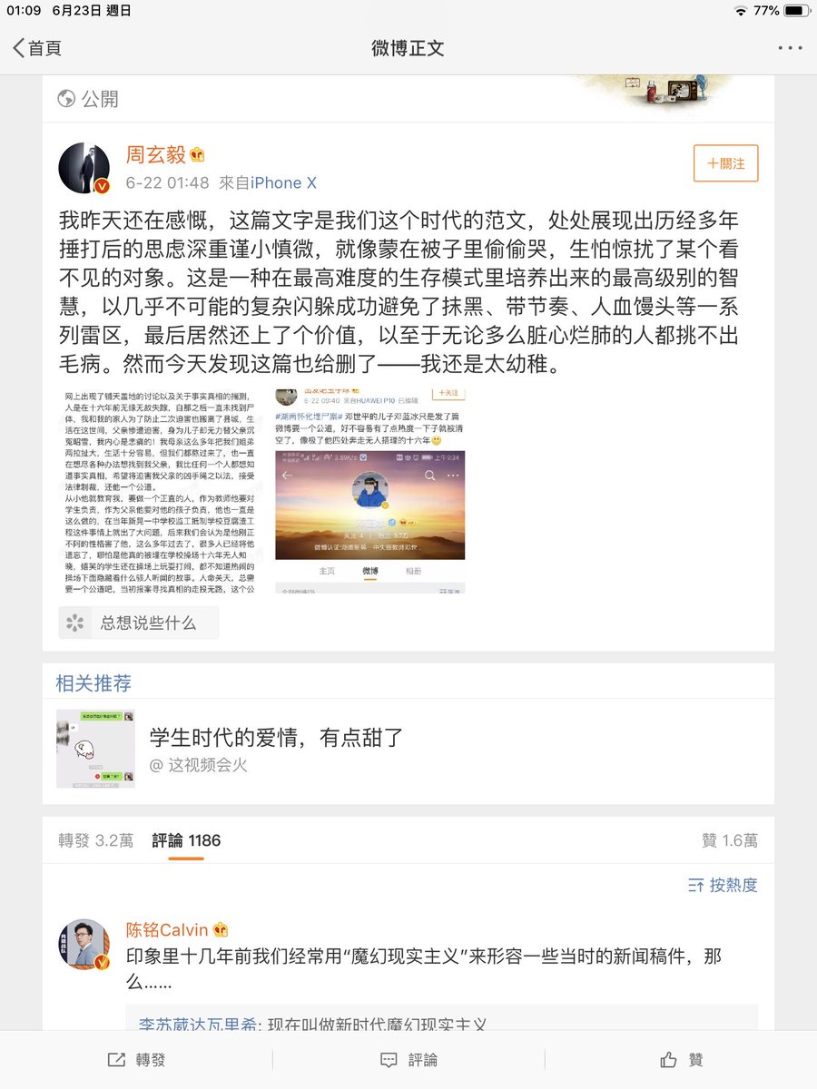 昨晚從某個模糊不清的超長截圖里看到一篇文章(推特不支持清晰顯示長截圖,請諸位避免再這麼做)依稀看出來名字大概叫做《知識份子的骨頭幾兩重》,看起來像是微信號上發佈的,然後可能很快被刪除了。微信和墻的威力有多大,在谷歌上根本搜不到,不知道有多少文章因為發在微信而永遠不再見天日