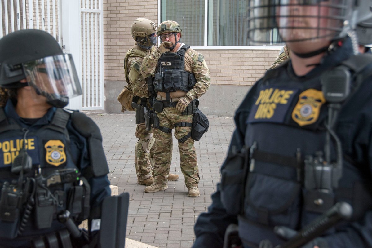 Update: 50+ officers in riot and military gear still surround the ICE building in Portland. Protesters, including clergy, continue to gather at