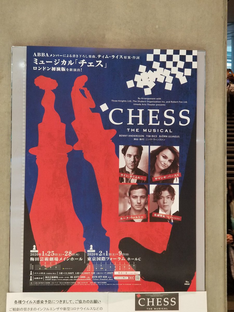 『CHESS THE MUSICAL』を観てきました。 どのキャストも歌が上手くて見応えあり。日本人キャストもおりますが、全編英語上演。アンサンブルの方々含め、すごく努力されたんだろうな~ってくらい、楽曲も難しく美しかった。