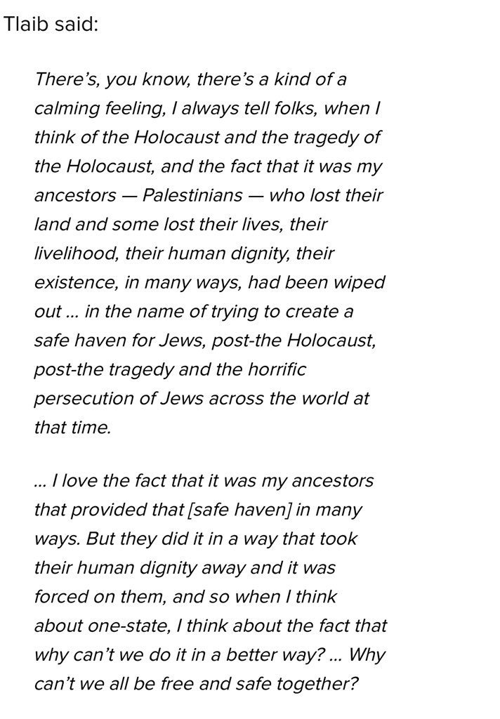 Rep. Tlaib's office released a statement today confirming she intended to make her ahistorical claims. Holding Reps. Tlaib and Omar responsible for their words is entirely appropriate notwithstanding their groundbreaking roles. To do otherwise demeans them. 2/2