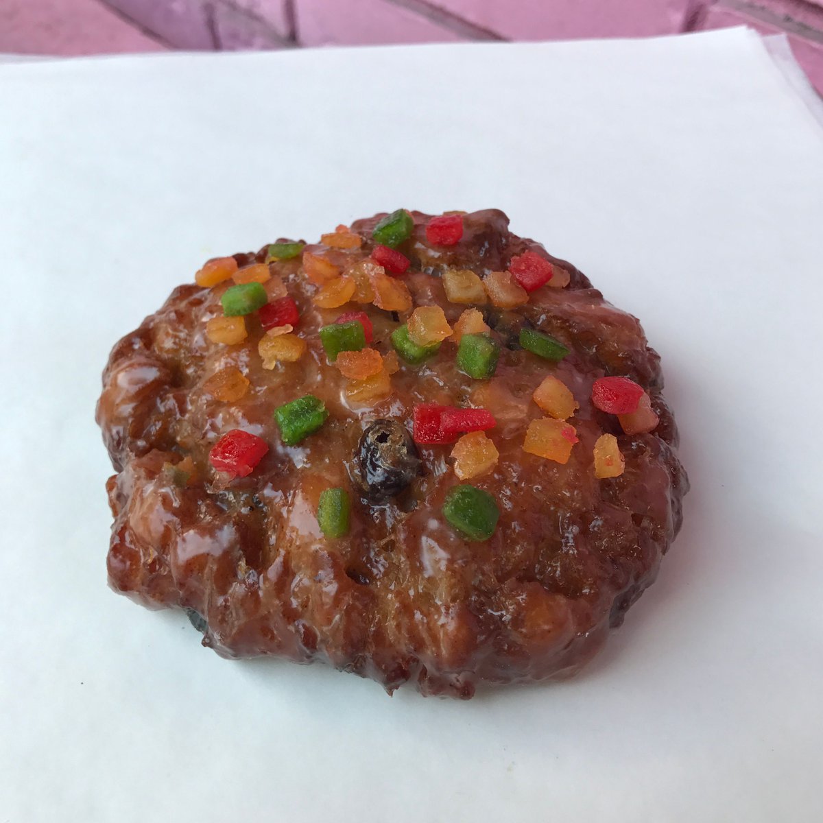 I like Voodoo Doughnuts, however, this fritter has the questionable fruit that I remember from the nightmare that is fruitcake...