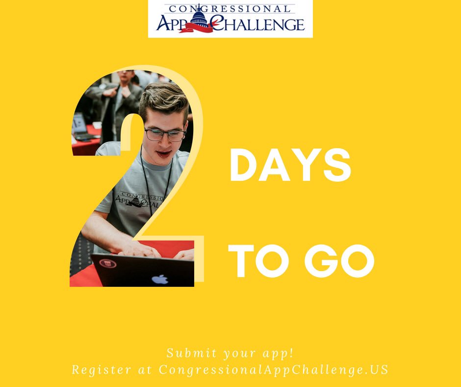 #NV01 Students: The Congressional App Challenge Countdown is now 2 DAYS! Register and submit your app by October 15th. More info here: http://titus.house.gov/app-challenge #Congress4CSpic.twitter.com/7pfS9rcIcC