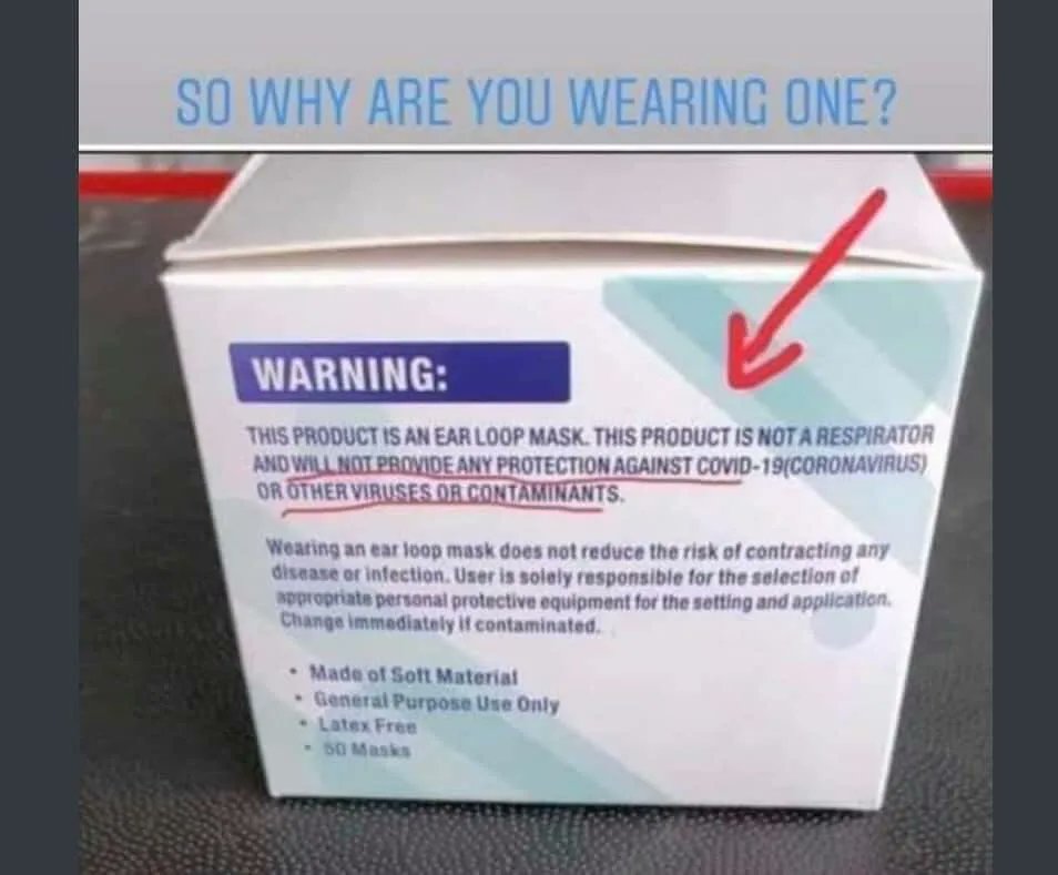 you mean wear this mask? "...will not provide any protection against COVID-19 (Coronavirus) or other viruses or contaminants." Signed, The Box The Masks Come Inpic.twitter.com/LrLBpqS2bV