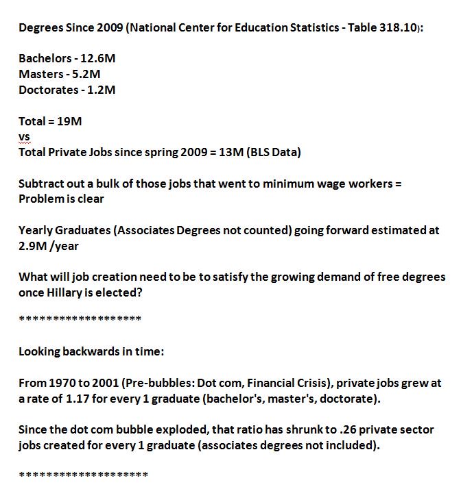 1970 to 2001 (pre-bubbles) Jobs to Graduates Ratio was 1.17 Since then the ratio is .26