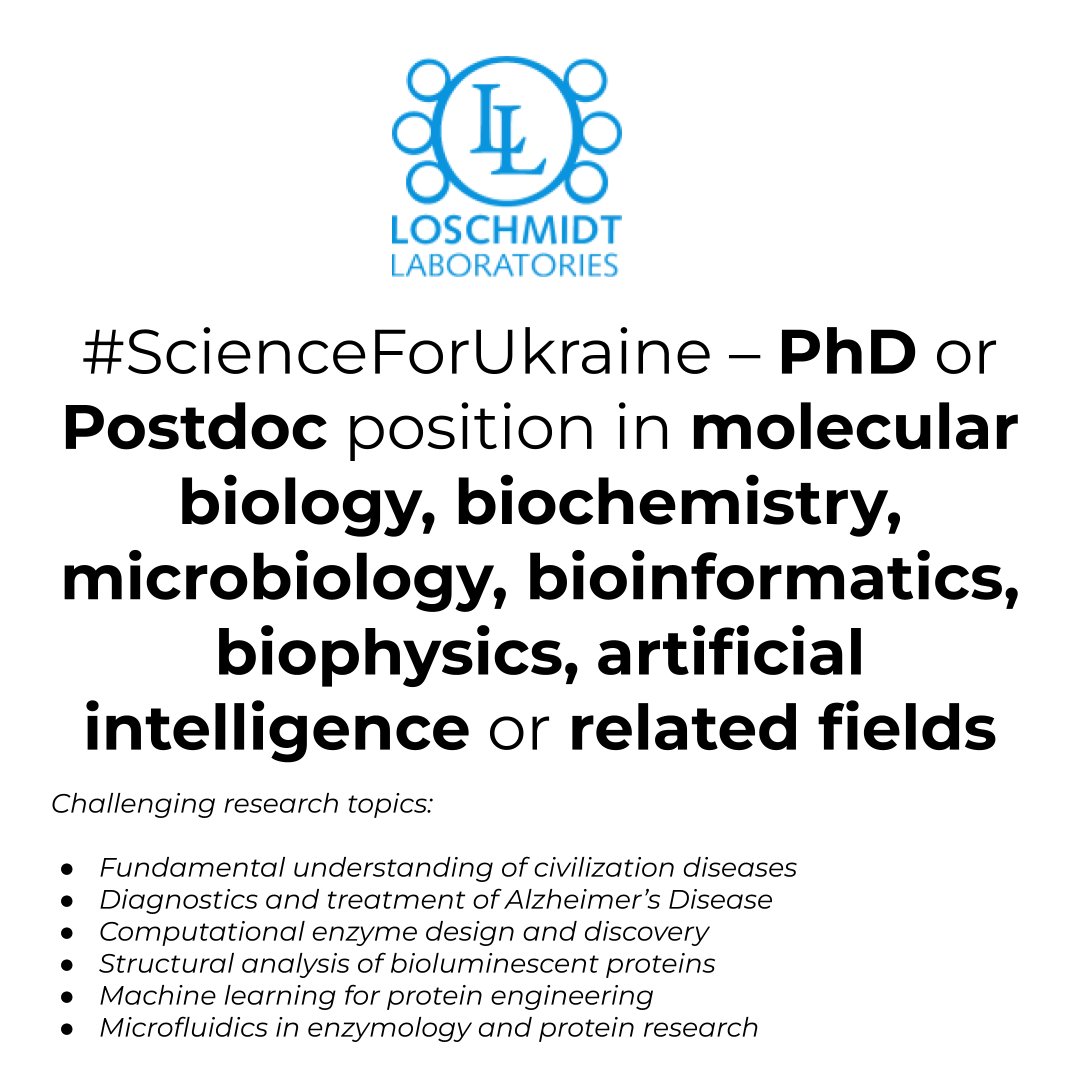 #ScienceForUkraine – #PhD or #Postdoc position in #molecularBiology #biochemistry #microbiology #bioinformatics #biophysics #artificialIntelligence or related fields available in @LoschmidtL @sci_muni Read more at: https://www.researchjobs.cz/19IMy  #CzScienceForUkraine CC: @MUNI_Sciencepic.twitter.com/JG4X160syW