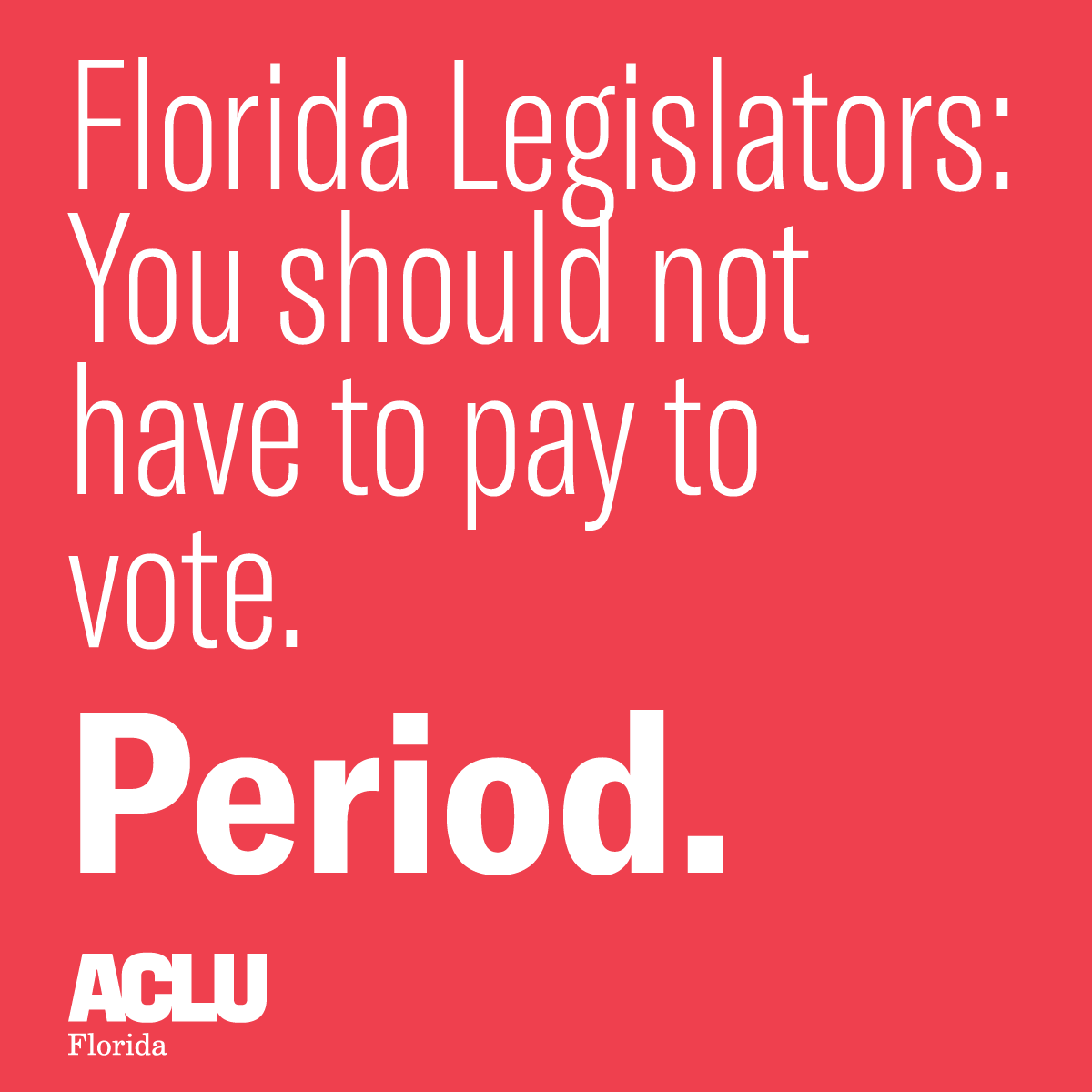 CALL NOW! Call Senator Jeff Brandes and Senate President Bill Galvano and urge them to oppose Senate Bill 7086. Tell them that voting rights should not be based on the size of a person’s bank account!https://www.aclufl.org/en/call-now-protect-amendment-4 …