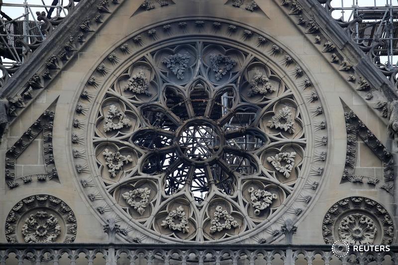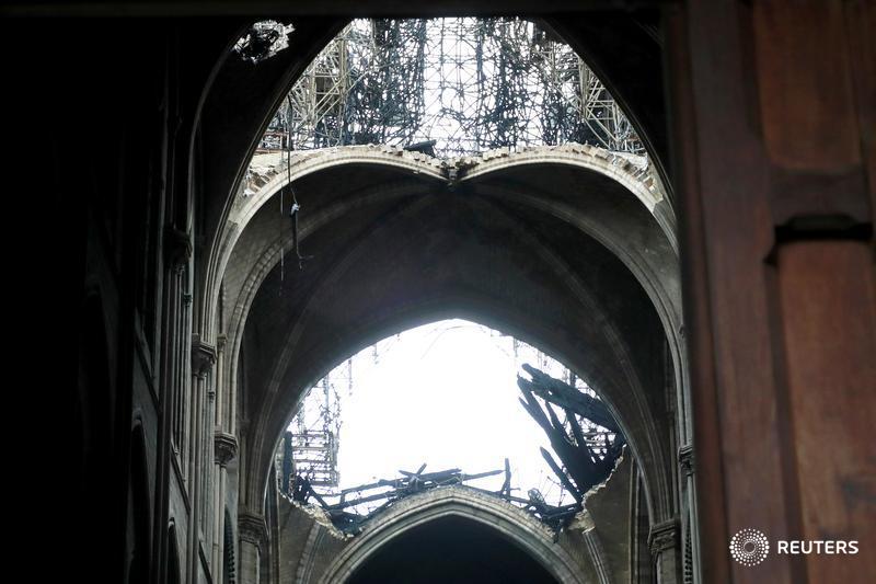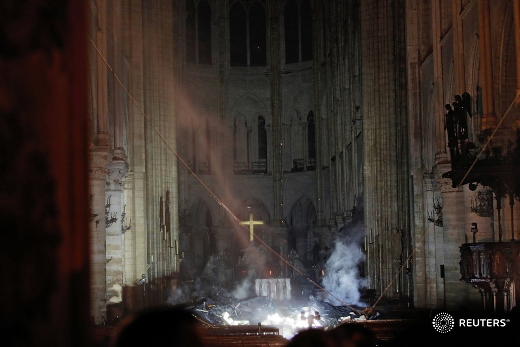 Notre-Dame’s spire was destroyed and its roof gutted but the bell towers were still standing and many valuable works of art were saved. More photos of the damage: https://reut.rs/2GgmkR1 pic.twitter.com/DEearPqBkt