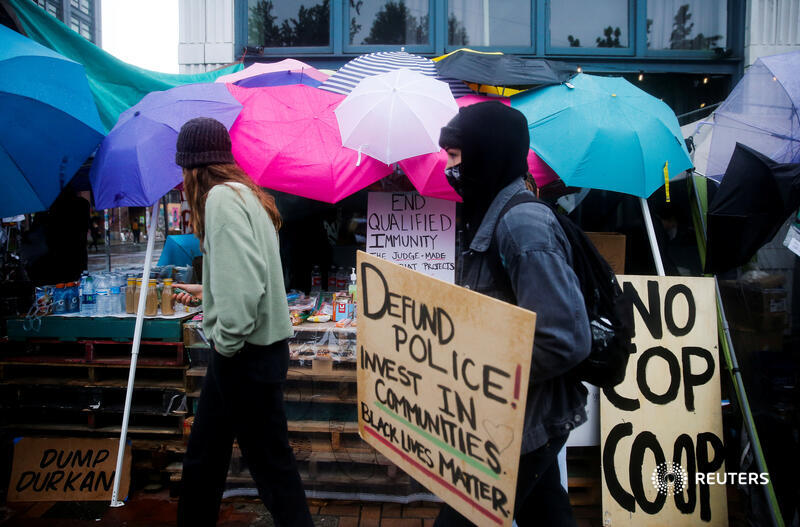 Protesters in Seattle's Capitol Hill neighborhood have established what they call an 'autonomous zone' around the vacated East Precinct police station. More photos: https://reut.rs/2AVH9lU pic.twitter.com/2TGtpj2IRc
