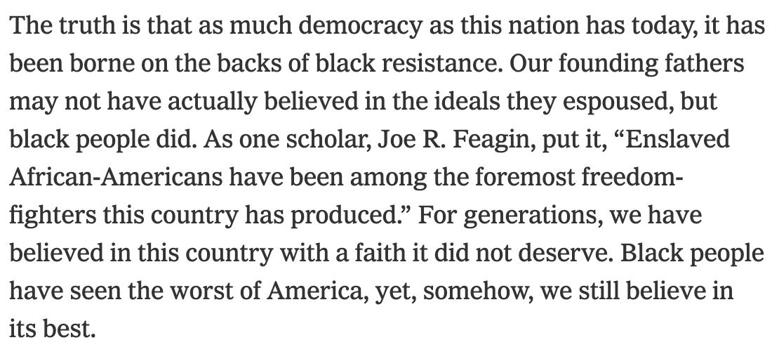 It's embarrassing how little I know about American history (I wasn't taught it growing up in Dubai, but still.) Reading the 1619 Project is life changing: https://www.nytimes.com/interactive/2019/08/14/magazine/black-history-american-democracy.html …pic.twitter.com/kvOOxb4XP7