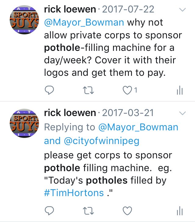 I would like people to take note of my idea which I tweeted to @Mayor_Bowman of #Winnipeg in July of 2017 - which was ignored.pic.twitter.com/wQzYMQzVsn