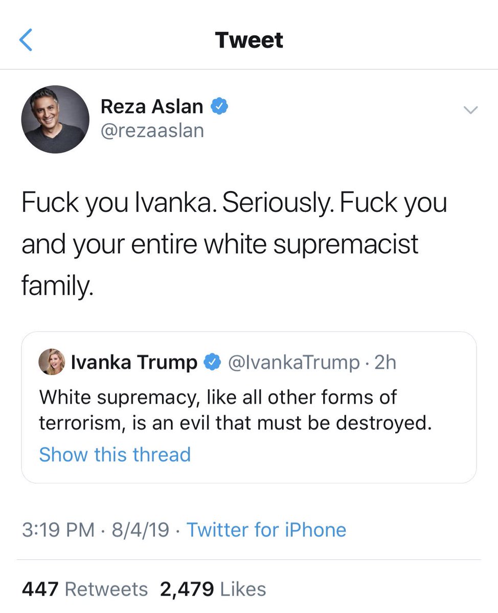 And yet if she’d tweeted nothing, he’d say the same thing. I thought denouncing white nationalism is what they wanted.