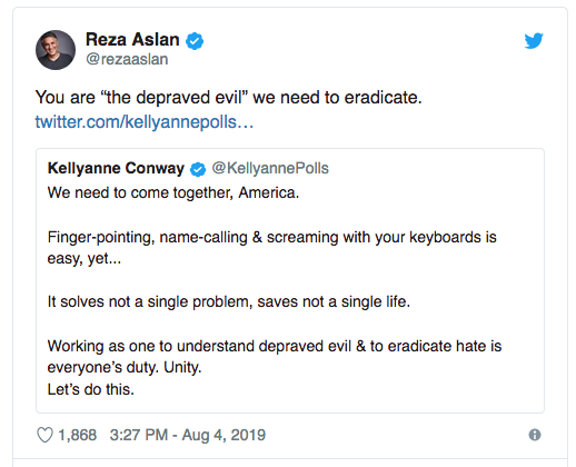 @Imamofpeace is right... ...@rezaaslan needs to be on Terrorist watch list and possible no-fly registry@KellyannePolls - End of conversation