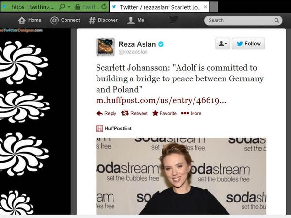 Scarlett Johansson: "SodaStream is committed to building a bridge to peace between Israel and Palestine"http://m.huffpost.com/us/entry/4661945 …