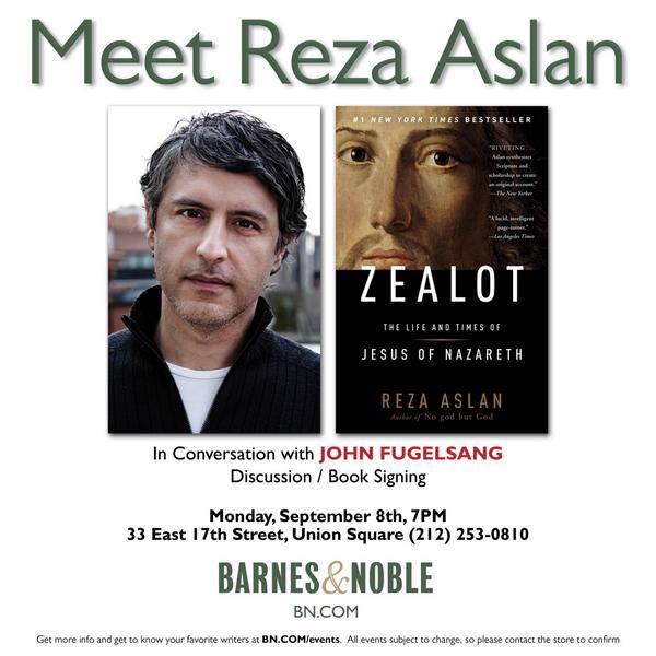 Monday 9/8 I'm interviewing @rezaaslan at B&N Union Sq #NYC for the paperback release of 'Zealot.' #p2pic.twitter.com/scdBFNfq5n