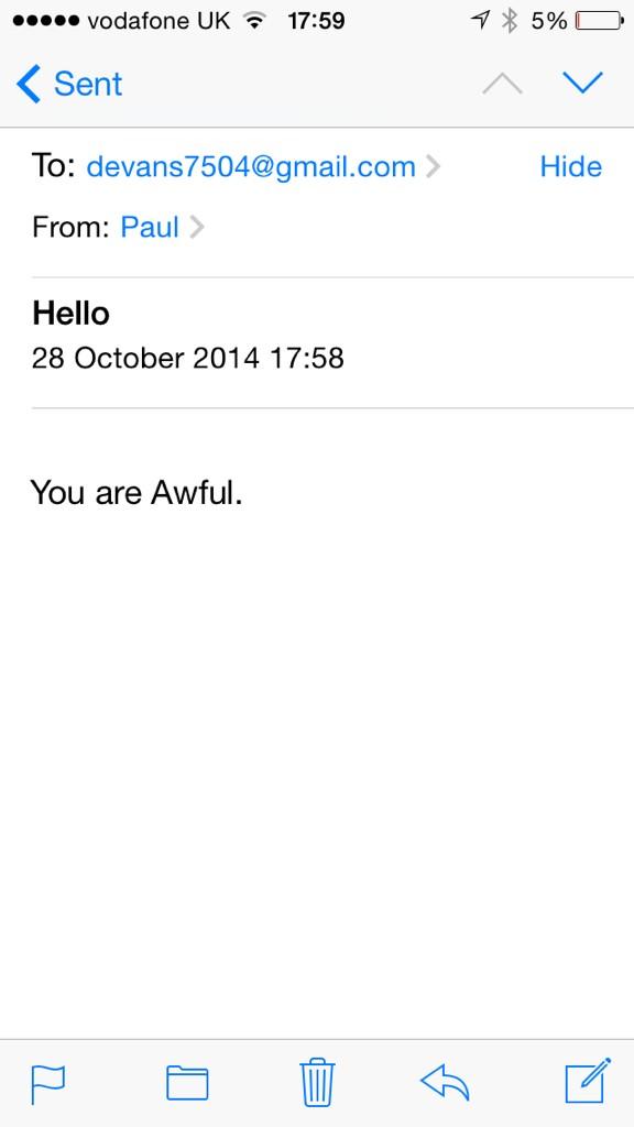 If you google his name devans 7504 you will see this guy is sending hate mail to all sorts of people!