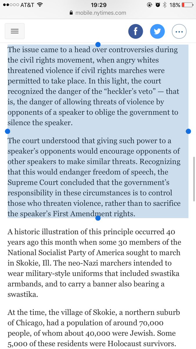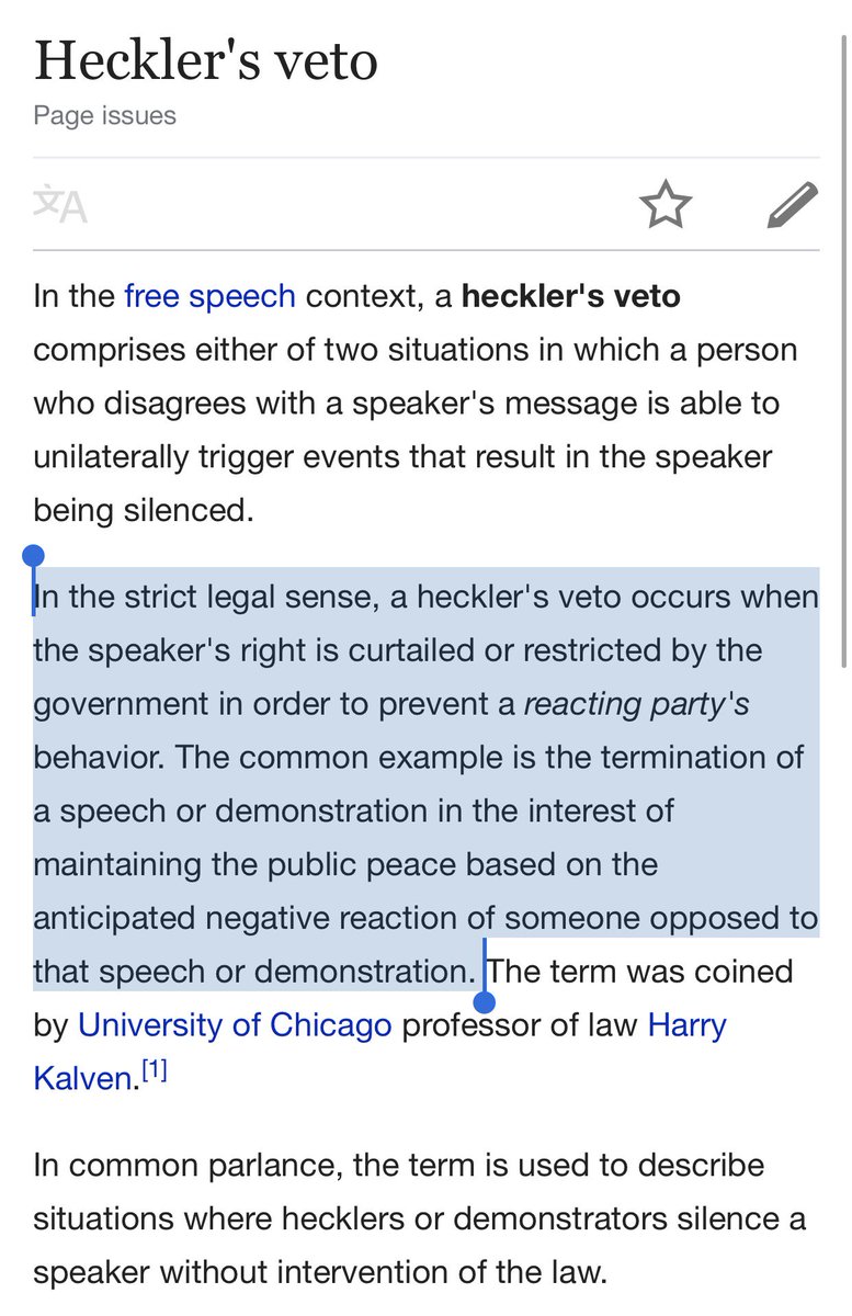 More from the @nytimes re: Heckler’s Veto—which is most certainly anti-free-speech. http://nyti.ms/2pxkm5E pic.twitter.com/5NawzwlgRg