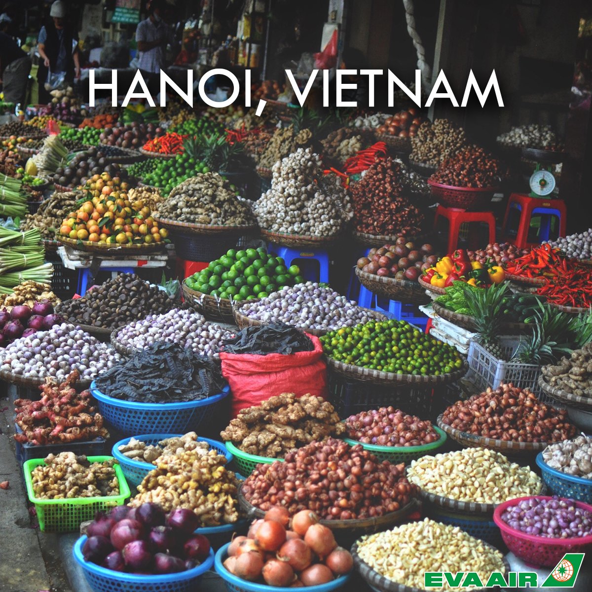 Feast your eyes on these treats! The Hanoi Weekend Night Market takes place weekly from Friday through Sunday & features roadside stalls, food vendors, & attracts locals & tourists alike. What fruits, vegetables, & spices look the most mouth-watering? → http://bit.ly/EVA-Book-Flight pic.twitter.com/5Je3WsRS0S