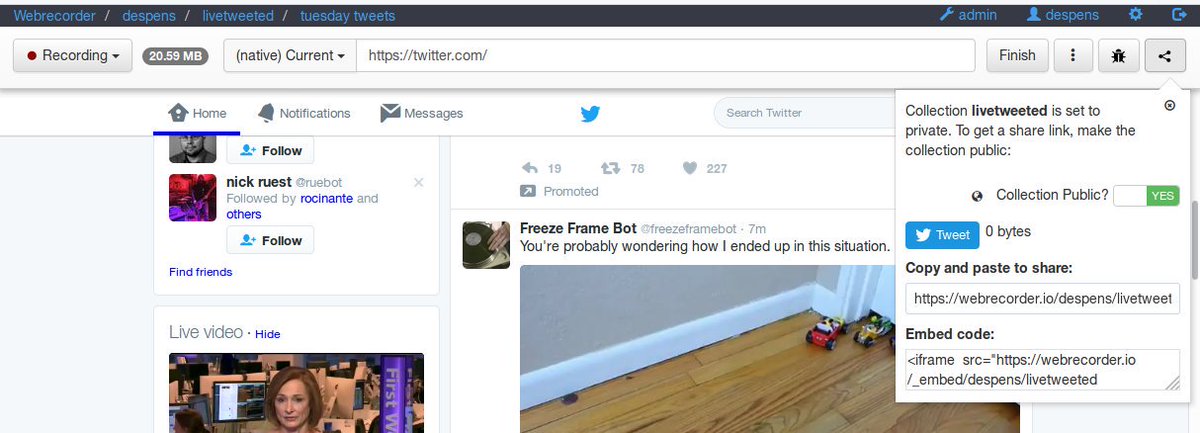 Exciting changes to @webrecorder_io: better organized layout & easy sharing/embedding! #webarchiving http://webrecorder.io pic.twitter.com/fLhqGnceLZ