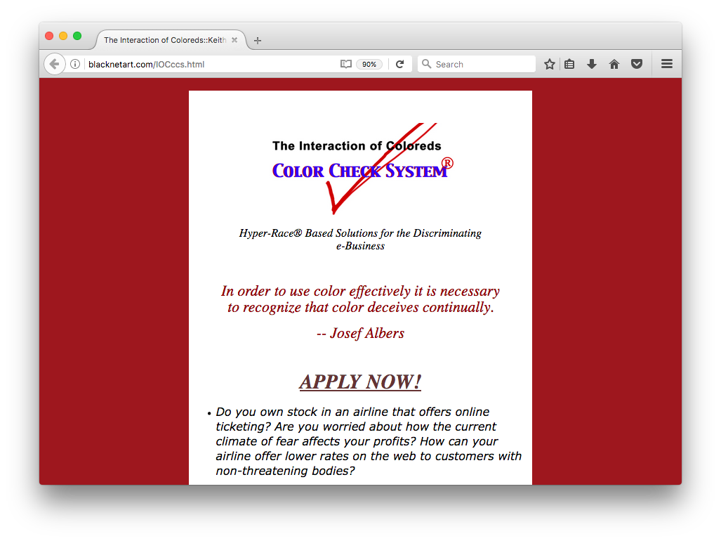 .@MendiandKeith's 'Interaction of Coloreds' (2002) is part of #NetArtAnthology this week. https://anthology.rhizome.org/black-net-art-actions …pic.twitter.com/J378CJ9UXx