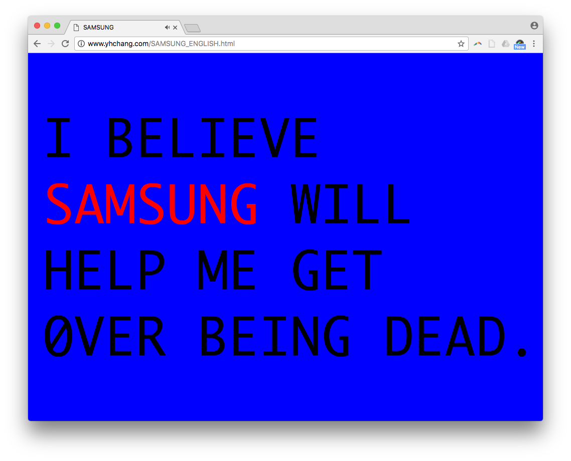 #22 in #NetArtAnthology: SAMSUNG by Young-hae Chang Heavy Industries. http://anthology.rhizome.org/samsung pic.twitter.com/S9NtYCTW5z