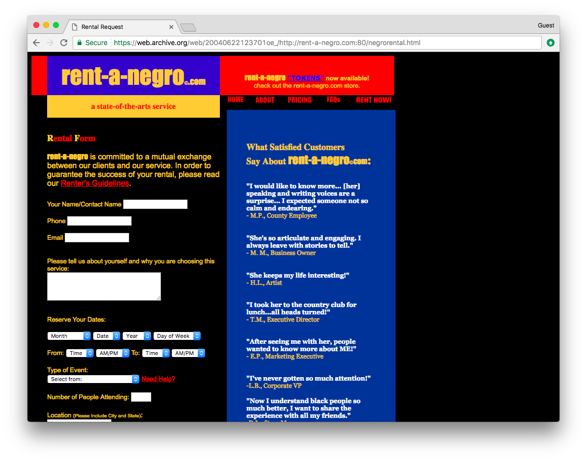 .@lol_prosciutto talked with the damali ayo art archive about net art, race, and more: http://rhizome.org/editorial/2017/aug/16/rent-a-negro/ …pic.twitter.com/TP80iONtbz