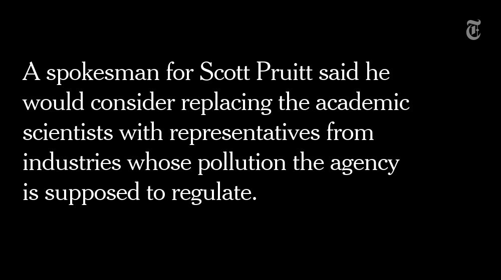 The EPA has dismissed at least 5 members of a major scientific review board http://nyti.ms/2pXaO4x pic.twitter.com/e4pz6CSJQK