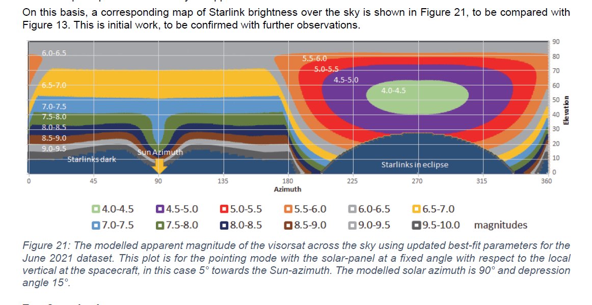 An interesting analysis by Richard Cole on the arxiv today: observations of Starlink Visorsats show they can be really bright in the anti-sun direction https://arxiv.org/abs/2107.06026 pic.twitter.com/ubk4x9Vuiy