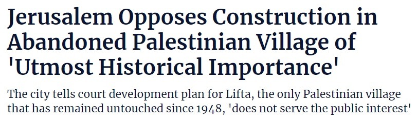 "Jerusalem opposes construction in abandoned Palestinian village of 'utmost historical importance'" Fuck no, Haaretz. It's not "abandoned!" It was depopulated by force. Its inhabitants forced into exile by ethnic cleansing. https://buff.ly/3Cm6fok pic.twitter.com/Bbp8dCbhKW