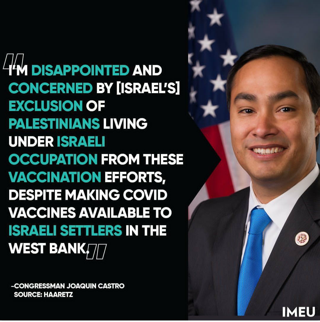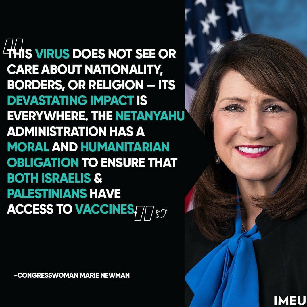 Four members of Congress denounce Israeli denial of COVID vaccine to occupied Palestine. https://buff.ly/3j3cQvD pic.twitter.com/gJuV1goxUE