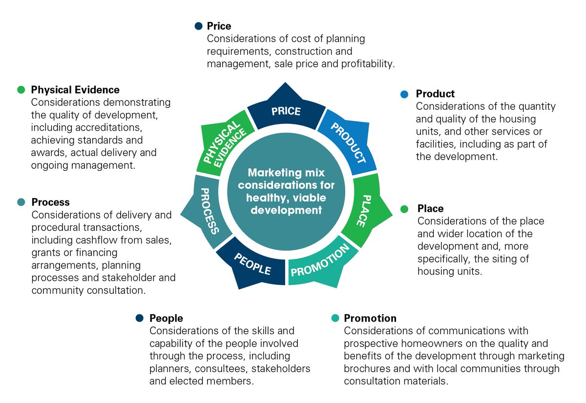 How developments can be both healthy & viable from marketing mix perspective: optimal equilibrium between price affordability, quality of product, location of place & effectiveness of consumer promotion. See