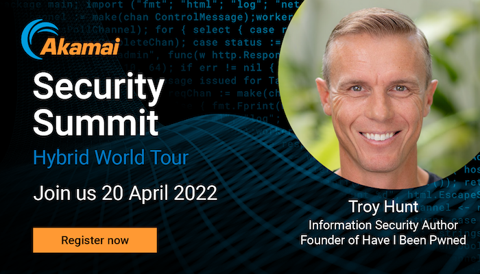 @troyhunt joins us on the Akamai stage to share lessons learned from running the Have I Been Pwned data breach service. Don’t miss it!#AkamaiSecurityLive http://ow.ly/a8Er50ICqnt pic.twitter.com/OHuwfqXktn