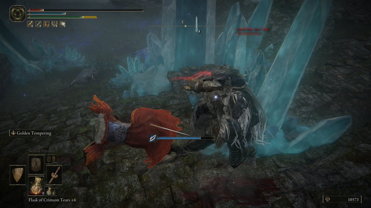 Game is Elden Ring, btw. It might be hard to parse the screenshot, but I'm rolling to the left to avoid a strike, just in the nick of time. NPC name and health bar is pixelated to avoid potential spoilers for folks.