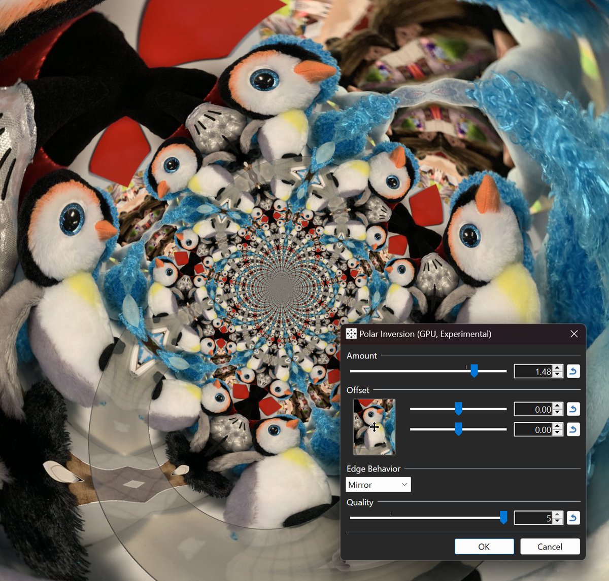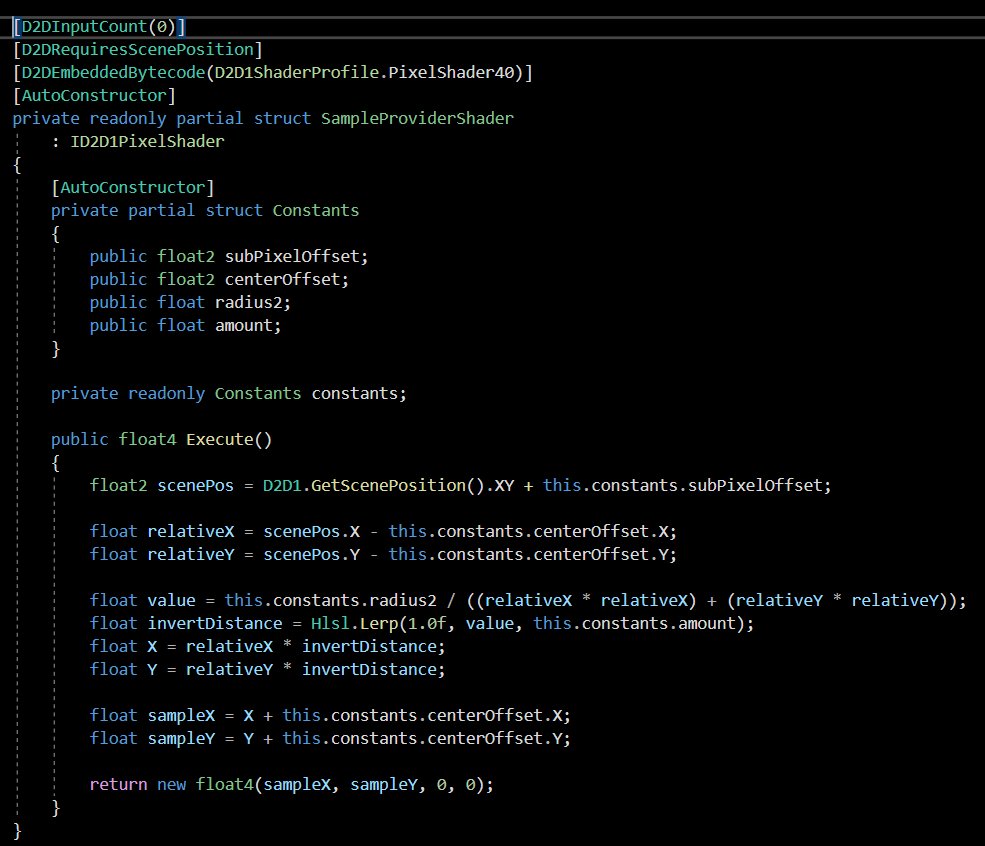 @SergioPedri 's new ComputeSharp.D2D1Interop package ... I managed to port Polar Inversion over using a SampleMap shader, which takes an input image + shader producing (x,y) values to do this:pic.twitter.com/t4fwQlpOHT