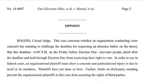 6th Cir releases a late Friday opinion, vacating a voting decision after finding no standing. http://www.ca6.uscourts.gov/opinions.pdf/14a0268p-06.pdf …pic.twitter.com/256yvirGYp