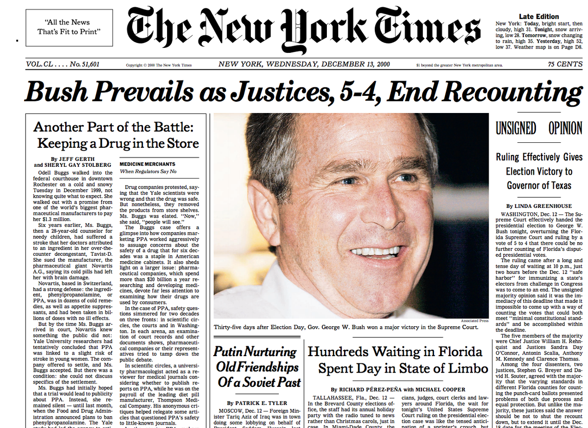 Ugh I will never get over this. Gore won the popular vote. RT @rickhasen: Dec. 12 2000 Bush v. Gore decidedpic.twitter.com/F8YqTAijLQ