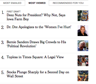 Deez Nuts number 1 NYT article (@tripgabriel) , Topless in Times Square # 4. Sighpic.twitter.com/BwSy8JmWpu