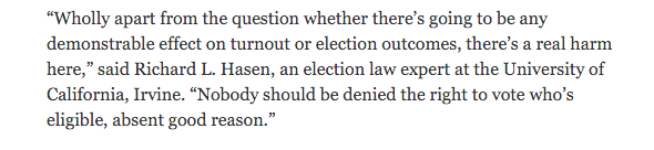 .@rickhasen Our raison d'être: “Nobody should be denied the right to vote who’s eligible, absent good reason.”