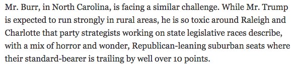 The precarious position of NC on both Presidential level and US Senate is entirely predictable given R Leg/Governor overreach since 2012