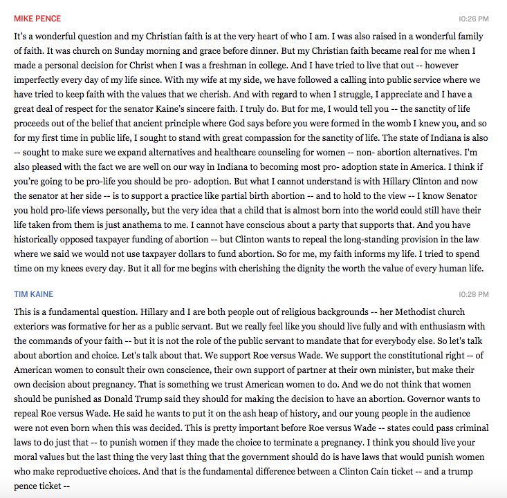 the question there was about faith, and Pence took off from that into abortion.