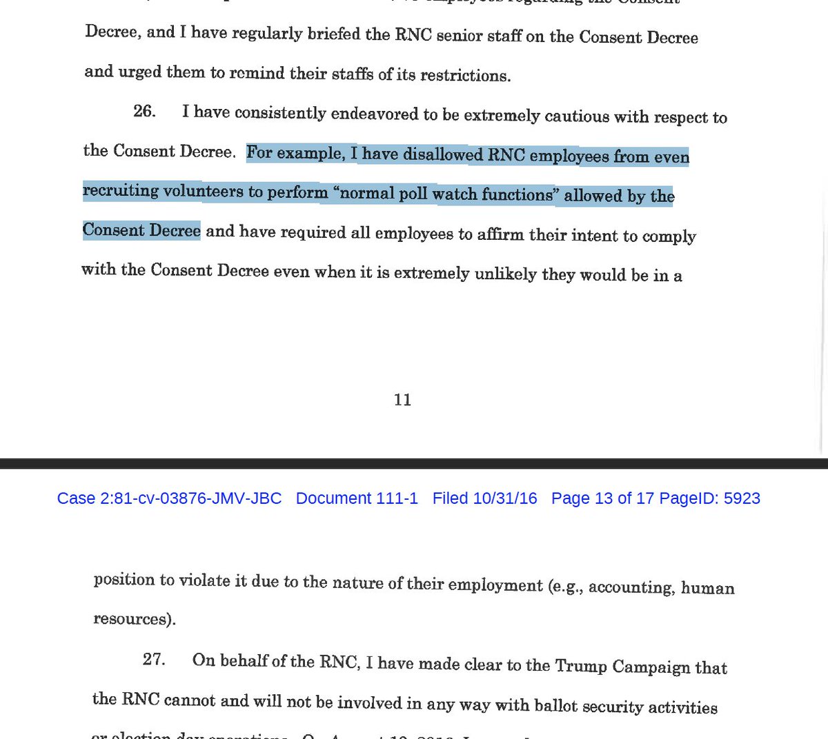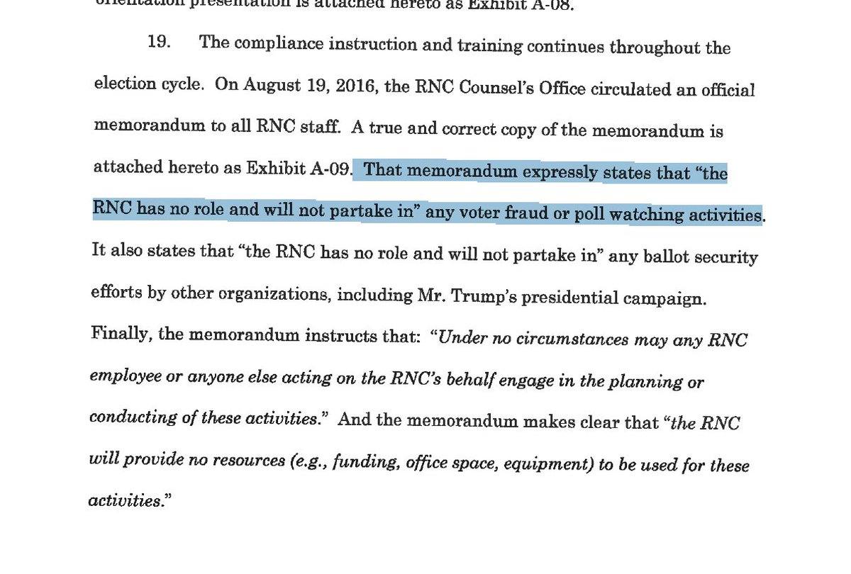 OK having slogged thru 351pgs, I find 3 examples where the RNC *almost* says it doesn’t do poll-watching; all carefully worded:pic.twitter.com/yMKvVxpCon