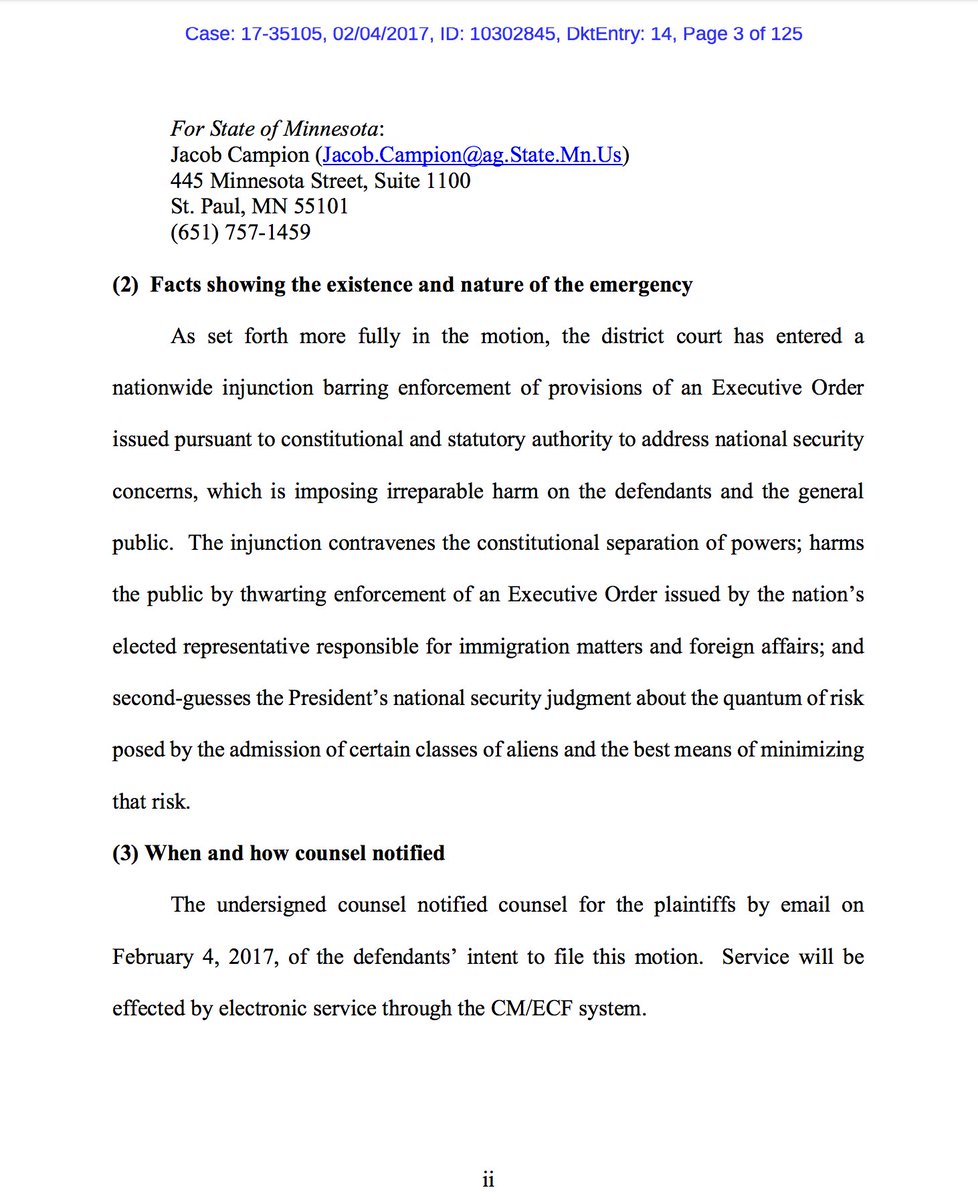 On page 5 of 9th Cir. brief,WA seeks to distinguish SEIU case on appealiabity of TRO http://cdn.ca9.uscourts.gov/datastore/general/2017/02/06/17-35105%20Washington%20Opposition.pdf …. Gives 9th way out if it wants
