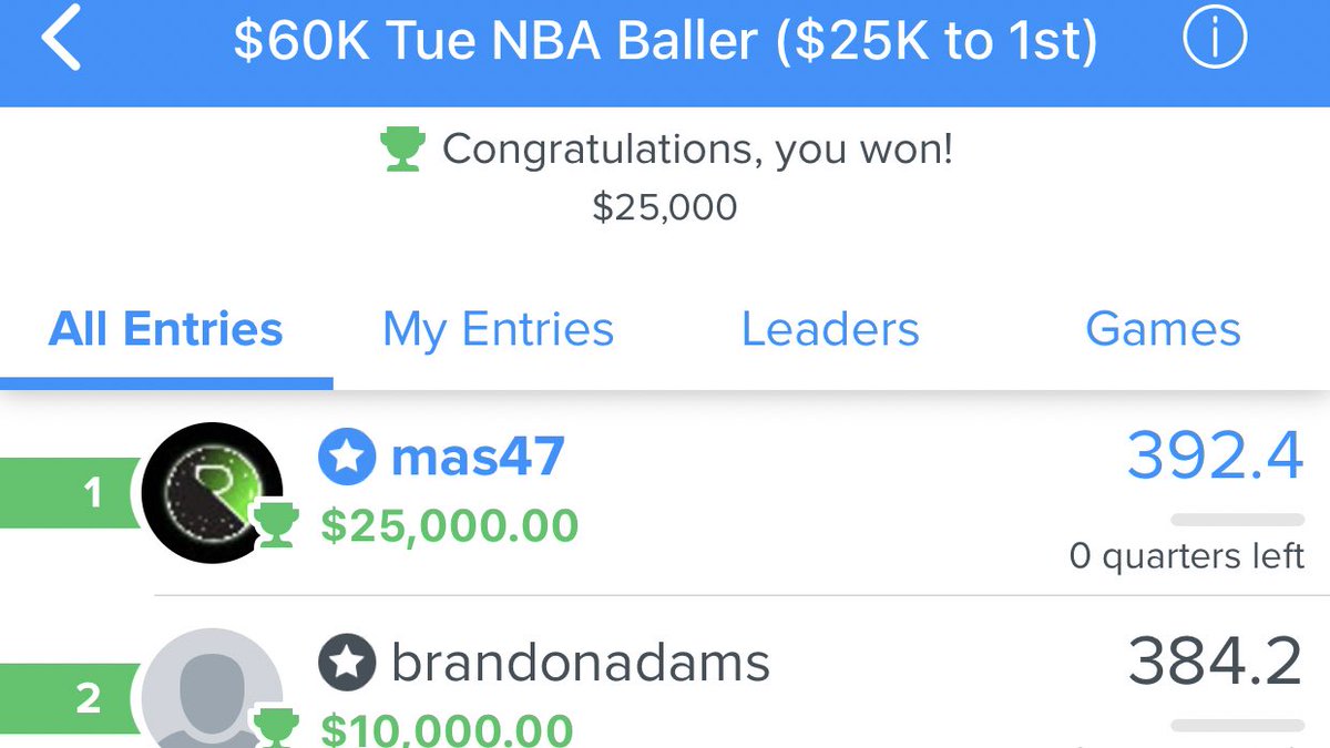 In the last 10 days I’ve taken down (with the exact lineup provided to the #RotoRadarNBA Team) three#DFS GPPs and made $70,000 in four contests. Time to give some back...